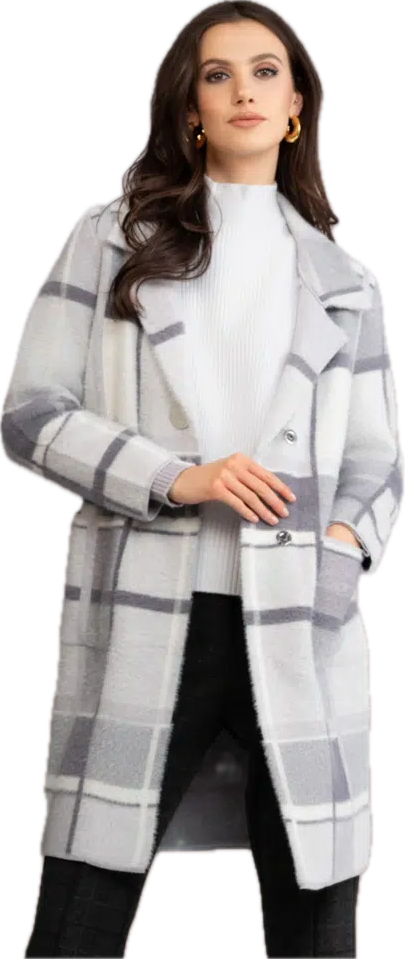 ALISON SHERI A46182 – GREY AND WHITE CHEQUERED COATIGAN