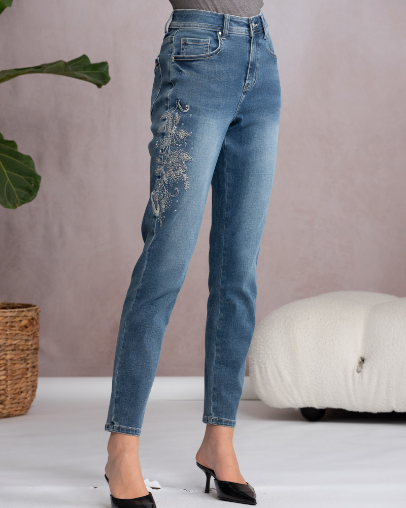 ALISON SHERI A46288 – STONEWASH EMBELLISHED JEANS