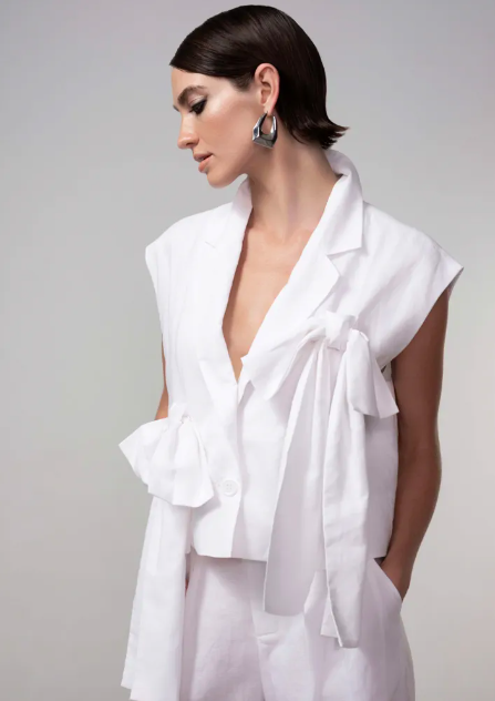 HAAKŌ – H1001 – White Bow Detail Sleeveless Shirt