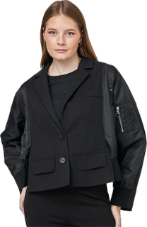 THIS BOMBER-STYLE BLAZER REINTERPRETS CLASSIC CODES WITH A UTILITARIAN TOUCH. FEATURING WELT SIDE POCKETS AND A ZIPPED SLEEVE POCKET, IT COMBINES STRUCTURE AND FUNCTIONALITY. A VERSATILE PIECE WITH A MODERN LOOK, PERFECT FOR ELEVATING A CASUAL OR PROFESSIONAL OUTFIT.